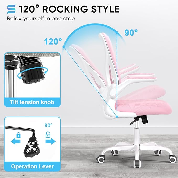 Sytas Ergonomic Desk Chair with Padded Flip up Arms and Supportive Lumbar Support, Breathable Mesh Home Office Chair with Comfortable Cushion for Home or Office(Pink)