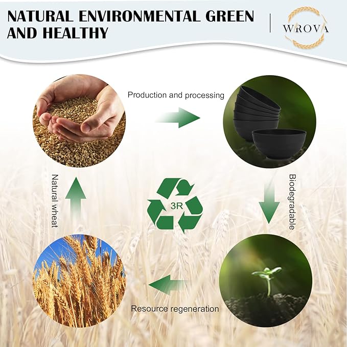 - 【Microwave & Dishwasher Safe】Our wheat straw bowls are very easy to clean,use and store,you can wash them with soap and hot water or place them into your dishwasher.And they work great in microwaves without getting too hot.Note:The temperature resistance reaches up to 248 degrees Fahrenheit(120℃).