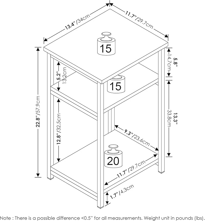- The 3-tier shelf offers additional storage that meets all of your different storage needs. The bottom can hold up to 20 lbs, and the top and middle shelves can hold up to 15 lbs.