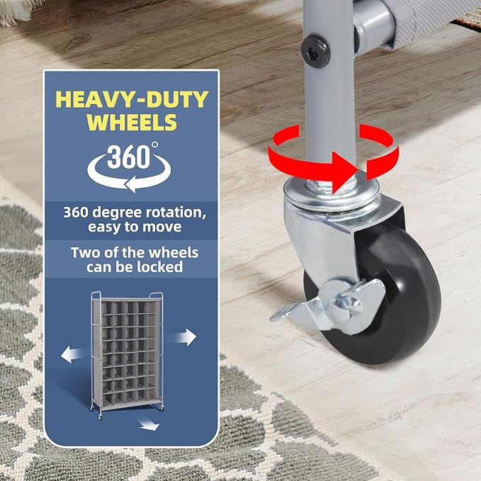 - Heavy-duty Wheels - 4 heavy-duty casters allow the tall shoe rack move freely; 2 rolling wheels of the vertical shoe rack are lockable to make it stay still.