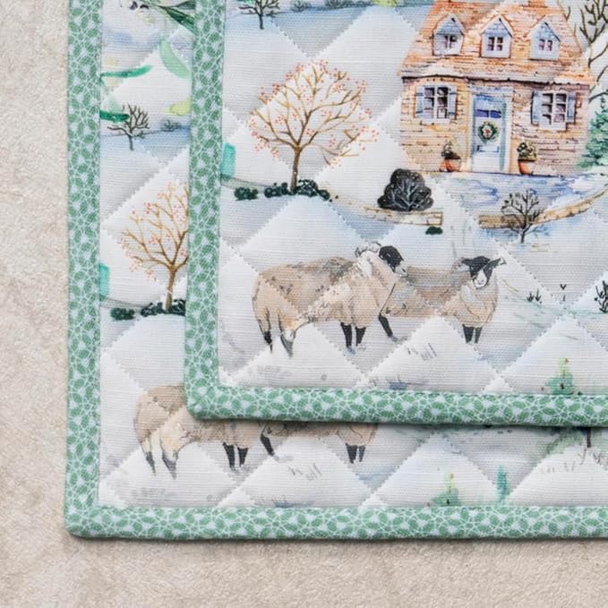 Maison d' Hermine Pot Holders Set 100% Cotton Heat Resistant Potholders 8" x 8" Hot Pads with Loop for Thanksgiving Christmas Decorations BBQ Cooking Baking Handling Hot Pans (Pack of 2, Snowy World)