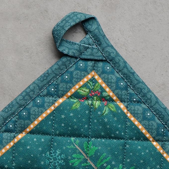 - Package Includes: Set includes 2 pot holders measuring 8" x 8", perfect for handling hot pots, pans, and dishes safely. Made from 100% cotton for reliable heat protection and durability. Designed in Europe and made in India