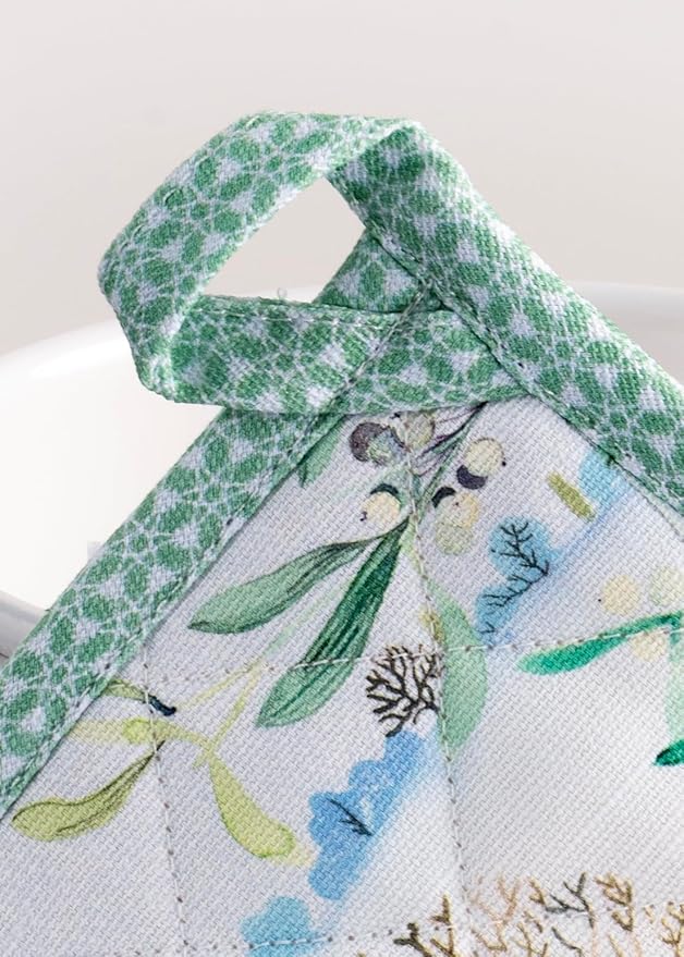 • Package Includes: Set includes 1 pot holder measuring 8" x 8", perfect for handling hot pots, pans, and dishes safely. Made from 100% cotton for reliable heat protection and durability. Designed in Europe and made in India