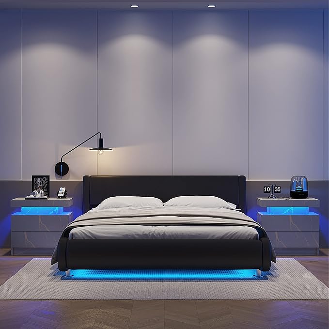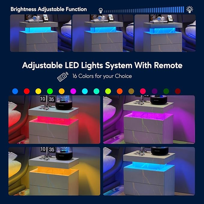 - 【Customizable Lighting】: With the built-in RGB LED strip system, this LED nightstand can be controlled through an app or remote, allowing you to choose from 29 dynamic light modes, adjust brightness, and sync with your music - all from the comfort of your bed.