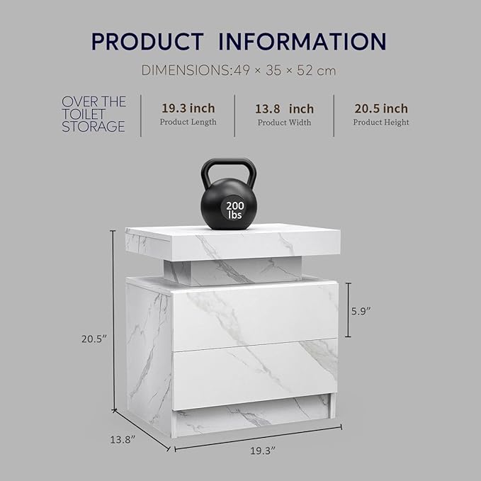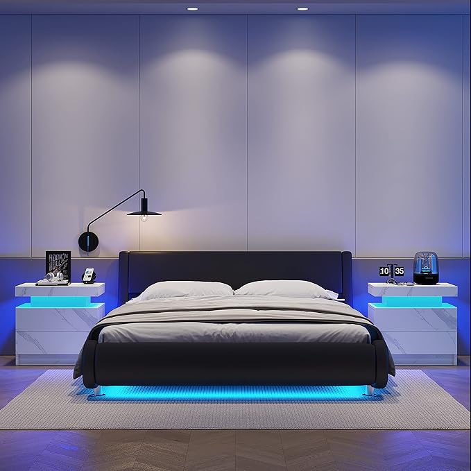 - 【Customizable Lighting】: With the built-in RGB LED strip system, this LED nightstand can be controlled through an app or remote, allowing you to choose from 29 dynamic light modes, adjust brightness, and sync with your music - all from the comfort of your bed.