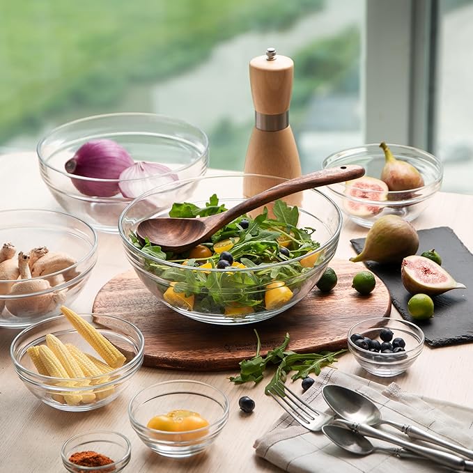 - Experience the joy and convenience of our glass bowls, perfect for enhancing your culinary adventures. Not only are they practical kitchen tools, but they also exude elegance and style, making them a must-have addition to your cooking arsenal.