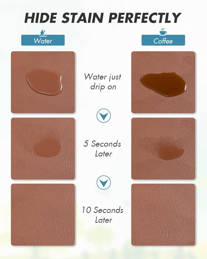 - NO WATER MARKS: 0.2" thick special PU surface hide coffee stains, milk stains and any other dark messy stains well. Say goodbye to traditional coffee mat full of stains