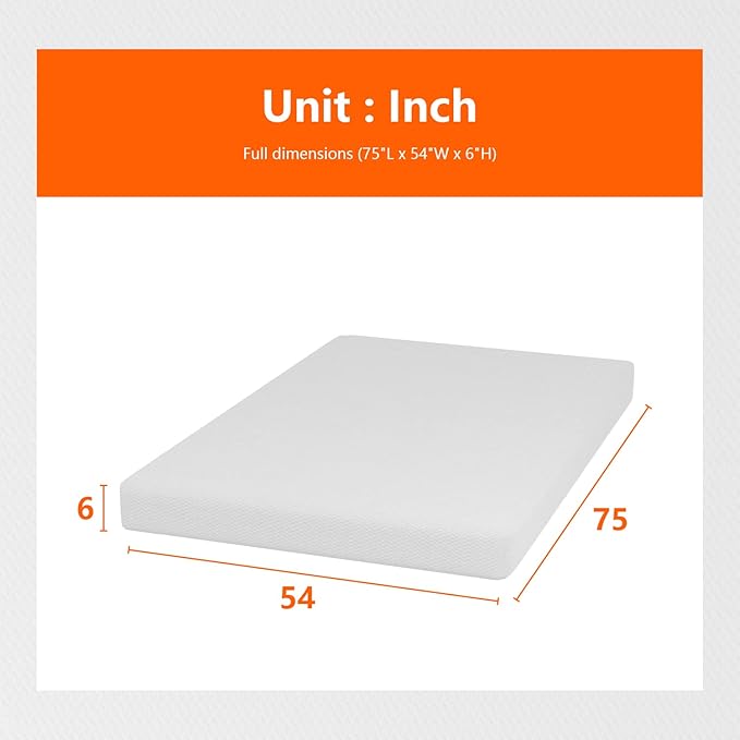 PayLessHere Full Size Mattress,6 Inch Gel Memory Foam Mattress in a Box,Medium-Firm,Pressure Relief&Temperature Regulation,CertiPUR-US Certified,White