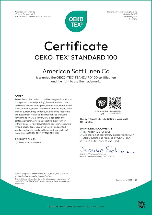 - ✅ These Towels are OEKO-TEX STANDARD 100 Certified and OEKO-TEX STANDARD 100 keeps you and your family safe by testing [each component of] a certified product against a list of over 1,000 harmful substances.