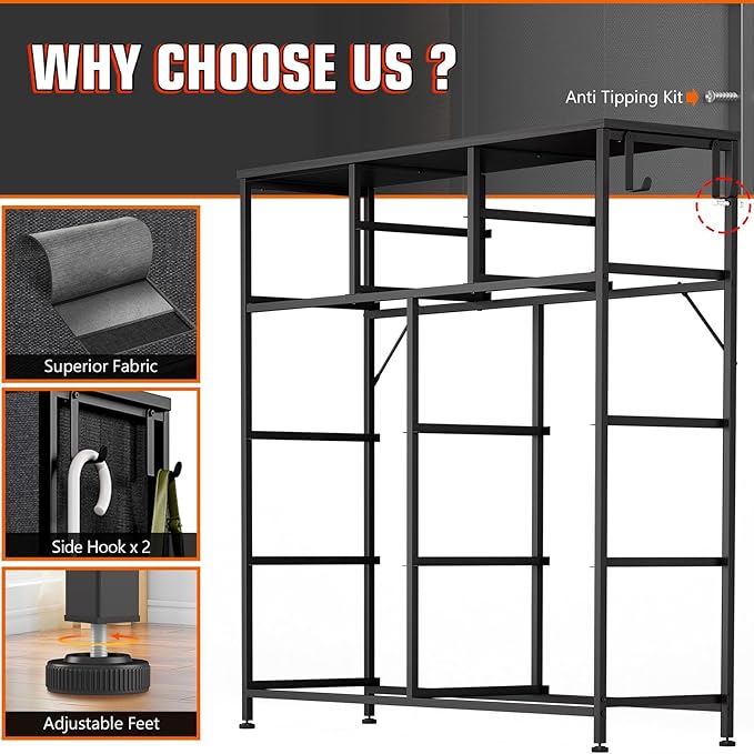 - 【Structural Stability】 A sturdy steel frame, wood top and high-grade non-woven fabric make up this tall dresser with adjustable feet and anti-tip accessories to keep the dresser from tilting and collapsing. Compared to inexpensive nonwovens, we chose a premium cationic material that is harder, smoother, more brighter and less prone to wrinkling and mildew.