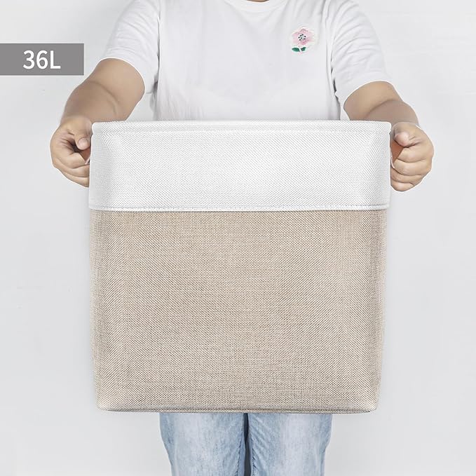- 【Maintenance & Care Tip】 - Collapsible design for space saving. Our foldable baskets comes in a compression packing which may result in wrinkled storage bin during the long transit. Get rid of the wrinkles by either stuffing the fabric storage bins with blankets and pillows for a few days or steam iron them at low-heat setting. The organization baskets are easy to clean, you can dust the basket with a soft cloth with light soapy water when needed. Not recommended to machine wash.