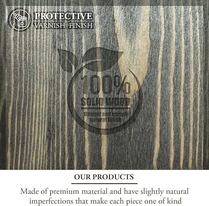- Constructed of solid wood with a vintage weathered gray finish and a matte black metal spindle with a decorative top sphere **Simple one-step assembly required**