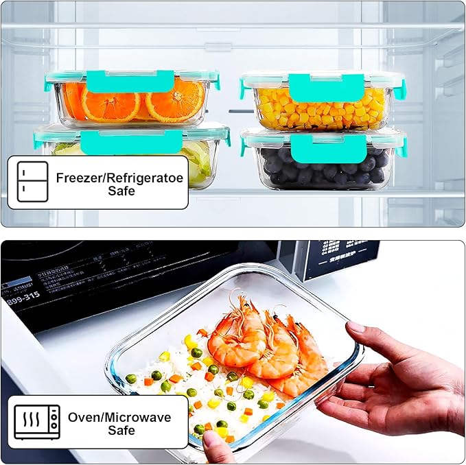 - GLASS MATERIAL EXCELLENCE IN QUALITY: Glass meal prep containers are made of high quality borosilicate glass, for oven, microwave, dishwasher and freezer. Stronger than cheaper glass food storage containers, food can be stored in glass containers directly after cooking. The containers are versatile to meet your everyday food storage needs, perfect for prep meals at home or whatever you need for the occasion