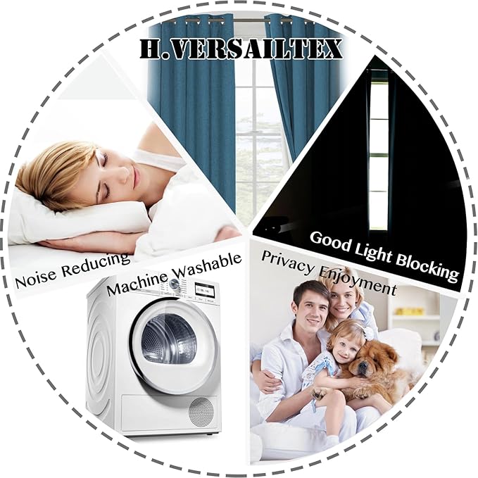 - WARM REMINDER: Shopping with H.VERSAILTEX linen look 100% blackout curtains with pure white flocking backing, add decent tone to your room aesthetics. While most similar items in the market are with dull greyish backing. So check and compare it carefully before ordering. Machine washable in cold water, use only non-chlorine bleach when needed, tumble dry low and warm iron as needed
