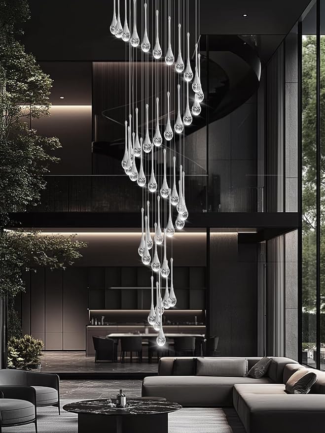 197inches Large Chandeliers for High Ceilings Silver Chandeliers for Entryway High Ceiling Pendant Lights Crystal Drop Light for Living Room Foyer Hallway Staircase
