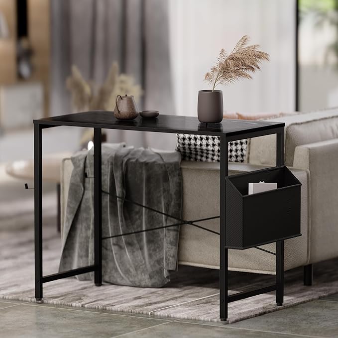 Pamray 32 Inch Computer Desk for Small Spaces with Storage Bag, Home Office Work Desk with Headphone Hook, Small Office Desk Study Writing Table