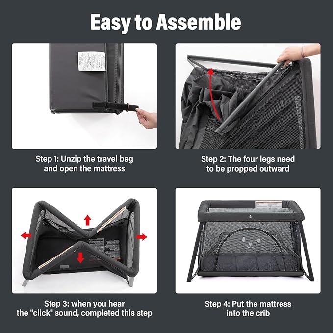 - 【Lightweight and Portable】The 3D Z-folding technology making the travel crib extremely compact,whether it's for outdoor use,car trips,et.It is a must-have ideal travel companion for babies and toddlers.The net weight is only 17.2 lbs,and the tool-free design can be installed within 1 minute. Its lightweight design makes transport a breeze, and its ease of assembly and disassembly is unrivaled.