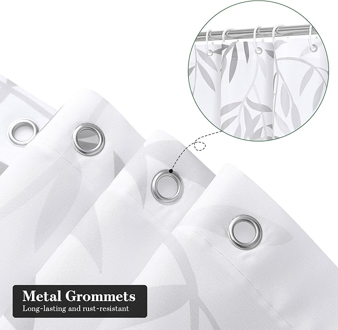 - Easy Installation - Equipped with rustproof grommets, this modern shower curtain effortlessly slides on most curtain rods, ensuring a quick and hassle-free installation process. The number of grommets varies according to width, with 6 grommets for the 36" wide curtain and 12 grommets for the 72".
