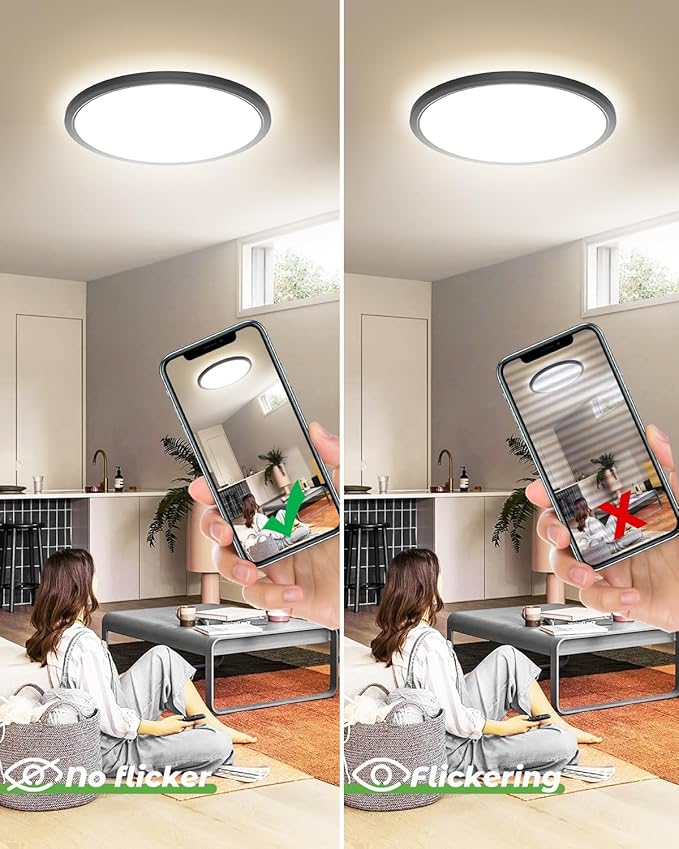 - 😊😊Eye Protection & Brilliant Quality: No flicker, no blue light, no radiation, and no UV, natural and uniform lighting sources take care of your eyes always. The High CRI(>80) ensures a true and vivid lighting experience in your home, ETL/CE approved, this ceiling light fixtures flush mount is eco-friendly and safe to use.