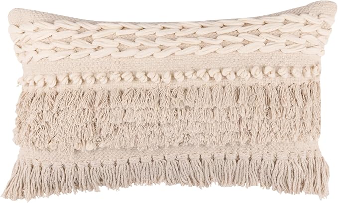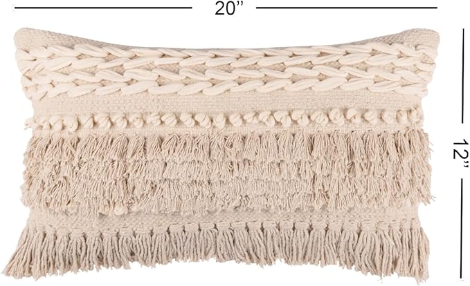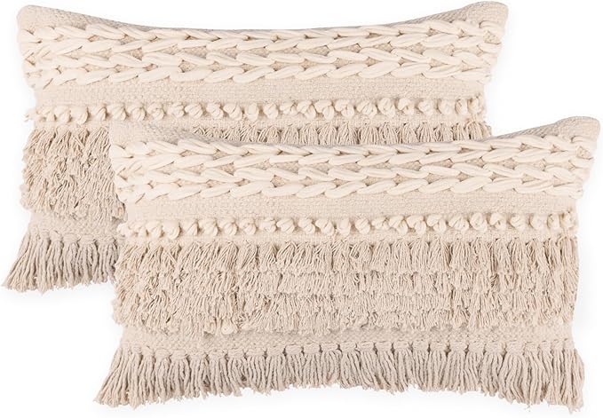 REDEARTH · Boho Textured Throw Pillow Cushion Covers- Lumbar Woven Tufted Decorative Farmhouse Cases Set for Couch, Sofa, Bed, Chair, Dining, Patio, Outdoor; 100% Cotton (12"x20", Natural) Pack of 2