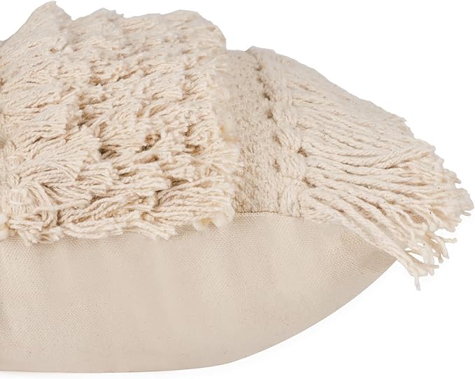 - Handloom Tufted Accents: Our pillow covers feature handloom dhurrie tufted accents in the front adding texture and dimension to their boho design, the back is made of plain cotton canvas fabric. The woven intricate details create a truly unique and artistic piece for your home.