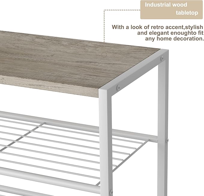 - Industrial Shoe Organizer with Large Tabletop: Specially designed with a look of wood accent, this small shoe rack is decorative enough to suit any corner of your house.