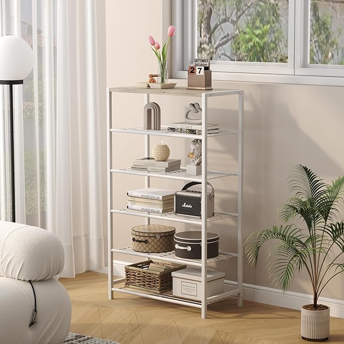 HOMEFORT Shoe Rack 6-Tier, Shoe Storage Shelf, Industrial Shoe Tower, Narrow Shoe Organizer for Closet Entryway, Small Shoe Rack Table with Durable Metal Shelves,White Oak