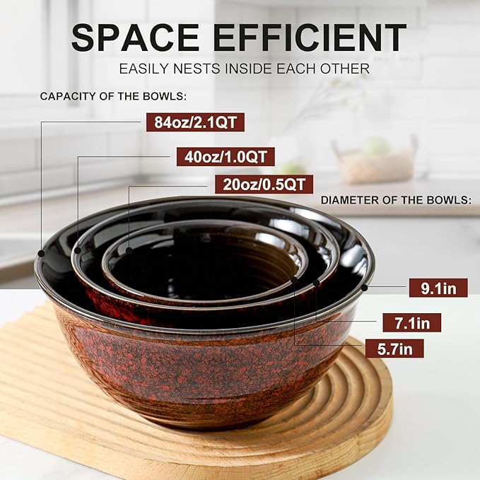 - Elevate Your Culinary Experience: Hasense Mixing Bowl Set of 3 offers 2.1, 1.0, and 0.5 qt capacities, ideal for salad prep, dough mixing, and serving cheese or fruit at picnics; perfect for creating delightful family culinary moments