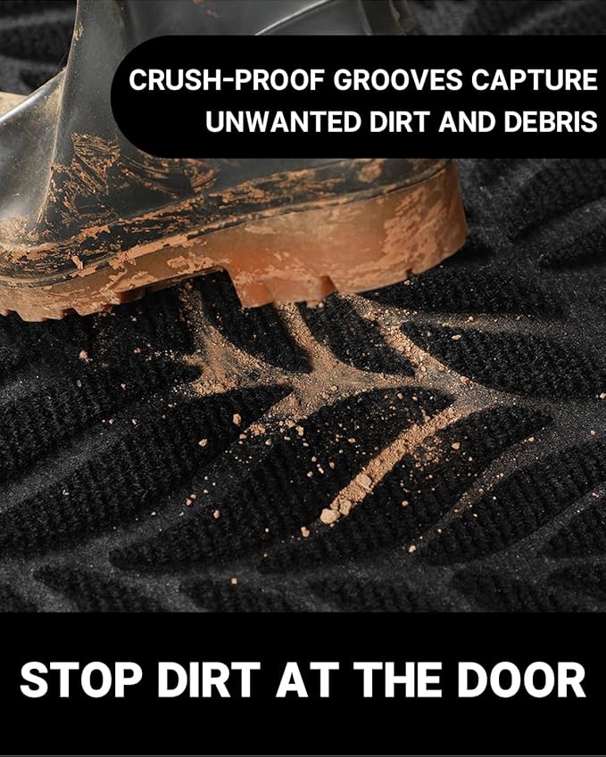 - 【Groove Pattern Design】:The Yimobra door mat features environmentally friendly polypropylene material with a patterned groove design that effectively captures and retains dirt, dust, and sand of the sole