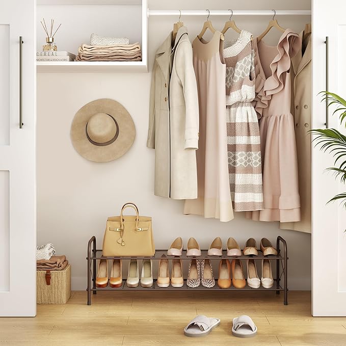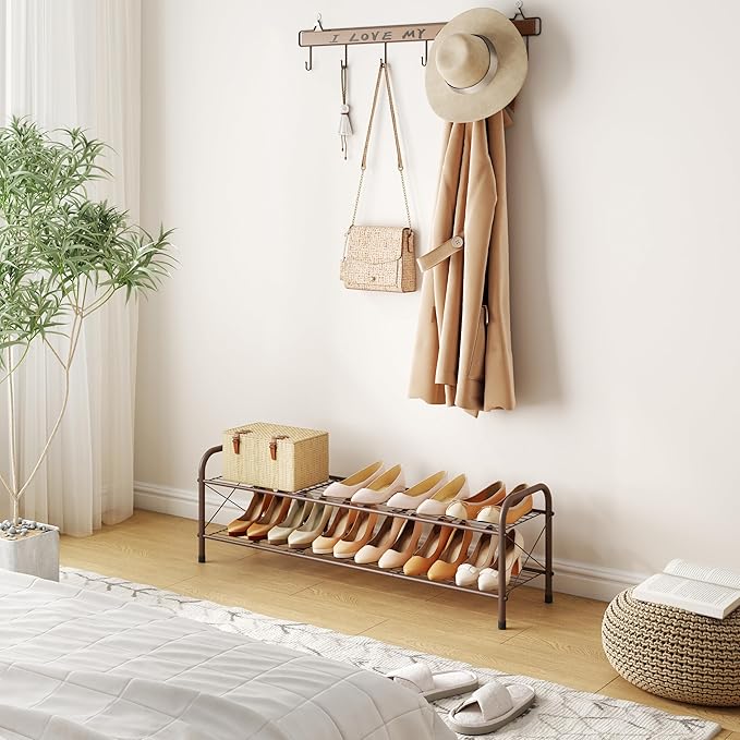Hoctieon 2 Tier Shoe Rack for Closet, Durable Mesh Style Shoe Rack, Entryway Shoe Shelf, Shoe Storage Organizer for Hallway, Bedroom, Living Room, Wardrobe, Brown
