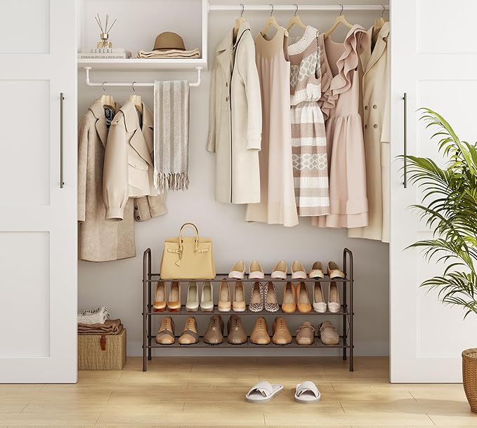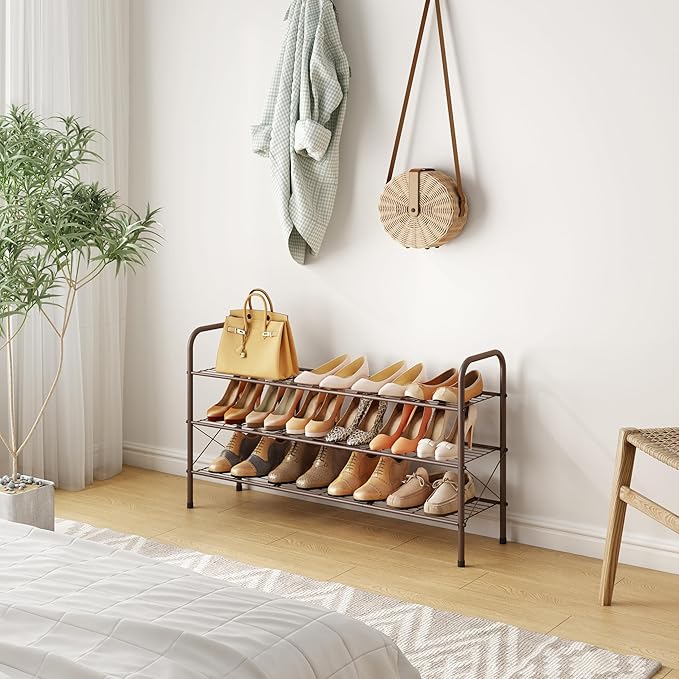 Hoctieon 3 Tier Mesh Style Shoe Rack, Entryway Shoe Shelf, Shoe Storage Organizer, Shoe Rack for Closet, Space Save for Bathroom, Garage, Hallway, Bedroom, Living Room, Brown