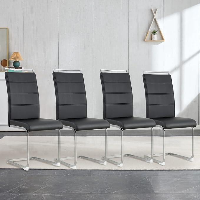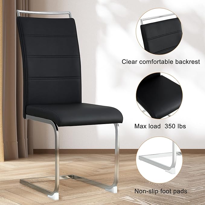 - Dining Table and Chairs Material:The tempered glass better then normal glass ,won’t fragile ,and it is heat temperature resistance and scratching resistance.The modern dining chairs made of high quality pu leather ,filled with sponge with sturdy metal legs.It will offer the good seating feeling when you back at home