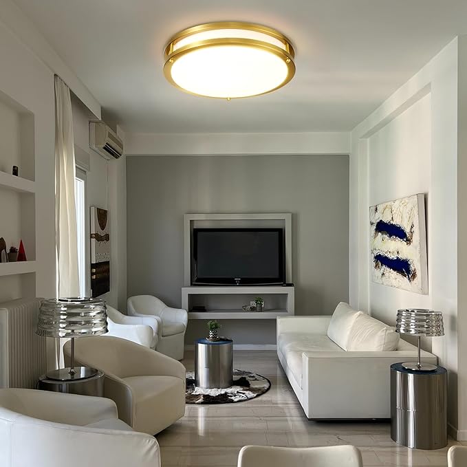 - ✯【 12 Inch 24W (120W Equivalent) Modern Round Ceiling Light Flush Mount】The LED overhead light fixture ceiling mount feature a stunning gold finish that adds a touch of luxury to any room. Our 24W (120W Equivalent) 12 inch LED interior light fixtures ceiling is applicable for room range 86-161 Square Feet (8-15 Square meters). Choosing a flushmount that reflects your style and provides the best overall illumination for your room.