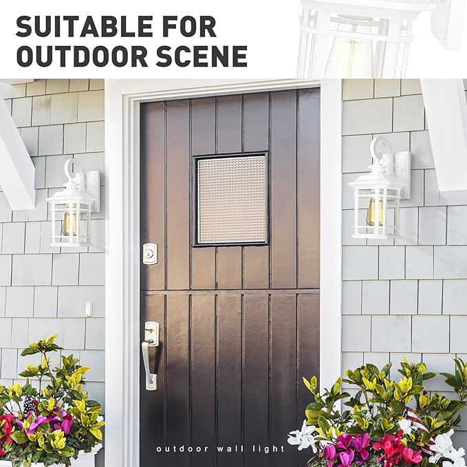 Emliviar 2 Pack Farmhouse Exterior Lights for House, 1-Light Modern Outdoor Wall Lights with Seeded Glass, White Finish, 2084B-2WH