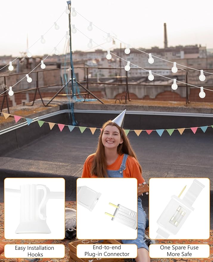 - Waterproof & Durable: With a fully sealed and waterproof design E12 base, G40 globe string lights can withstand rainy, windy, or damp climates, making sure that it is durable for long term use