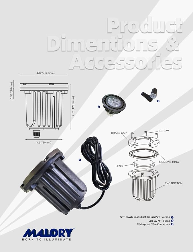 - LIFETIME WARRANTY:MALORY landscape lighting are built to the highest standards of construction and performance, we extends an industry-best lifetime warranty on its brass fixtures and 50,000 hrs for the LED bulbs.Please contact us if you have any issue, we will offer top rated customer service for you.