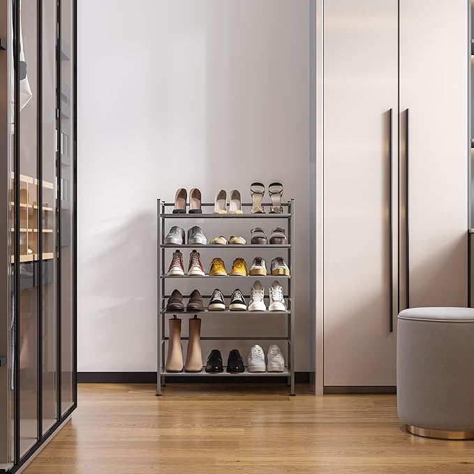- USE ANYWHERE — This versatile shoe rack shelving is ideal for any indoor room in your home including bedrooms, living rooms, door entryways, home offices, pantries, and garages.