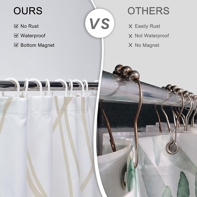 - EASY TO INSTALL -- This shower curtain set includes hooks for easy installation. The bottom of the shower curtain is designed with a 20g weighted hem, making it less likely to be lifted by the wind.