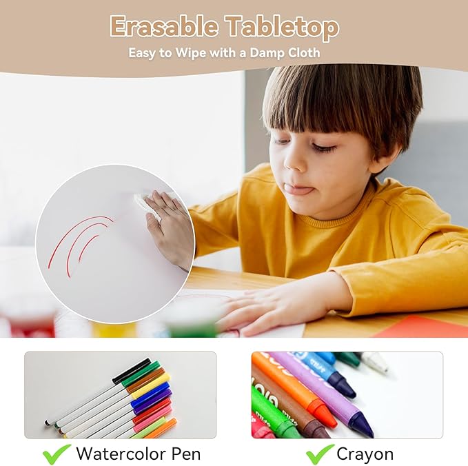 - 【THOUGHTFUL DESIGN】:The edge of this activity table is slightly raised to prevent the stationery from falling. The corners of the table are designed with arcs to reduce the damage to the baby due to bumps.