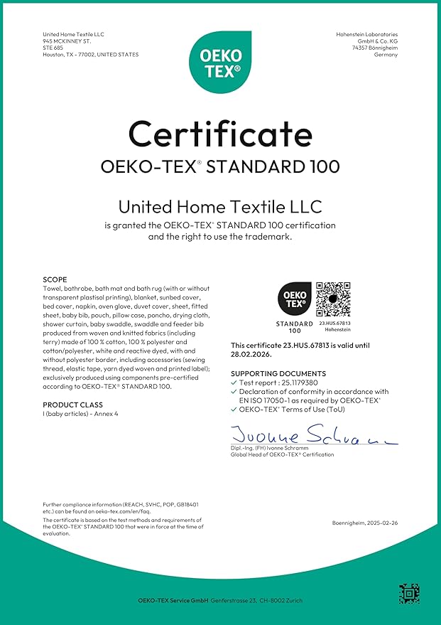 - ✔ OEKO-TEX STANDARD 100 keeps you and your family safe by testing [each component of] a certified product against a list of over 1,000 harmful substances. Certificate #23.HUS.67813 by Hohenstein.