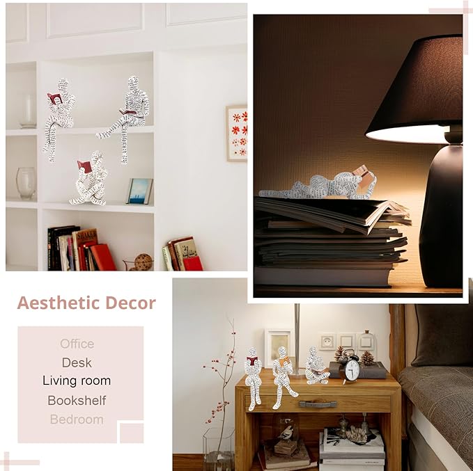 puthiac Small Decor Items for Shelf - Reading Woman Figurine Sculpture Thinker Statue - Modern Abstract Home Decor for Living Room, Office, Bedroom - Elegant and Aesthetic Decoration Statue 03