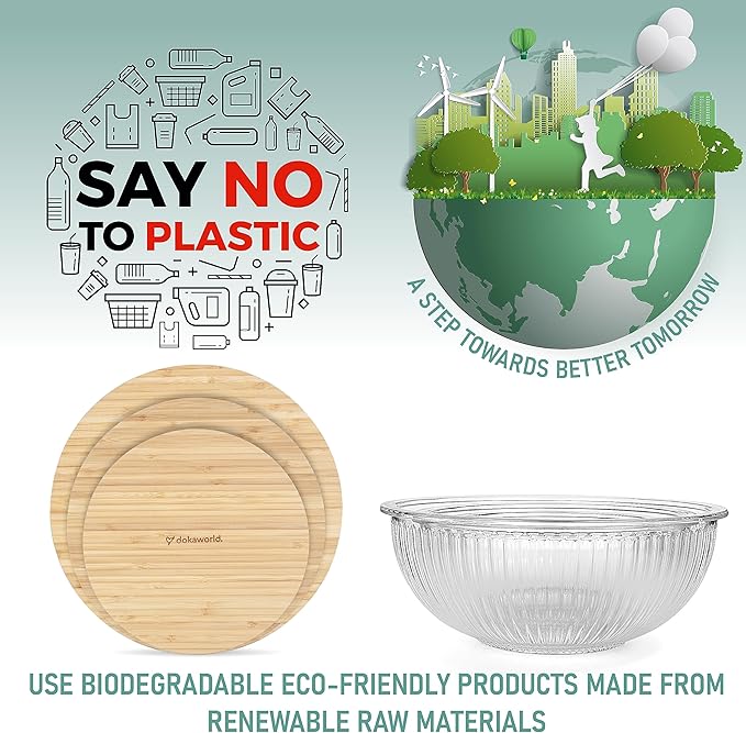 - SPACE-SAVING STACKABLE glass mixing bowls set will save space in your kitchen. The round ribbed glass bowls with wooden lids neatly nest inside each other, allowing you to store them in cupboards.