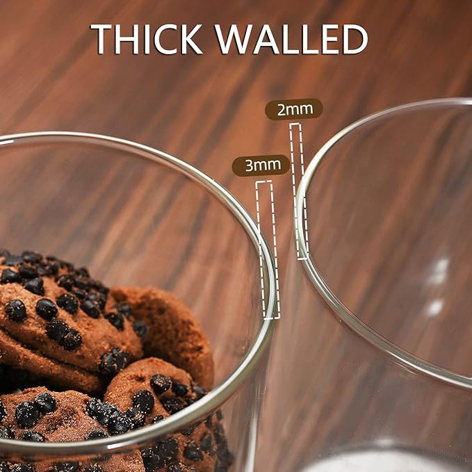 - TRANSPARENT GLASS: The sleek crystal glass allows you to see what is inside and easily monitor whether your food has run out without removing the lid. The clear jars look more visually appealing on your kitchen cabinet.