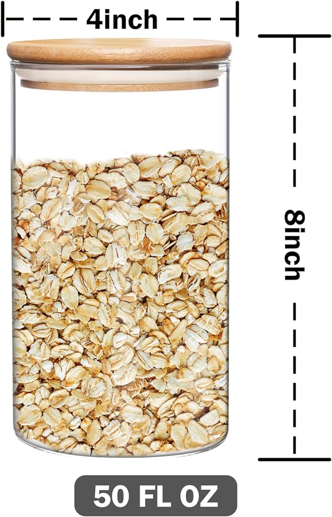 umieo 50oz (1400ml) Glass Jar with Lid Airtight Food Storage Container Bamboo Large Clear Canisters Hold Coffee Beans Candy Nuts Sugar