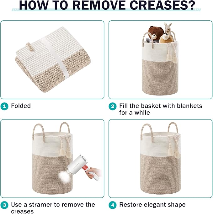 - 【Multipurpose Storage Baskets】70L capacity basket can keep things organized in a stylish and decorative way. You can use them to store extra towels, blanket, clothing, toys for baby and dogs, books, pillows or any other household items around the house, anything you can imagine