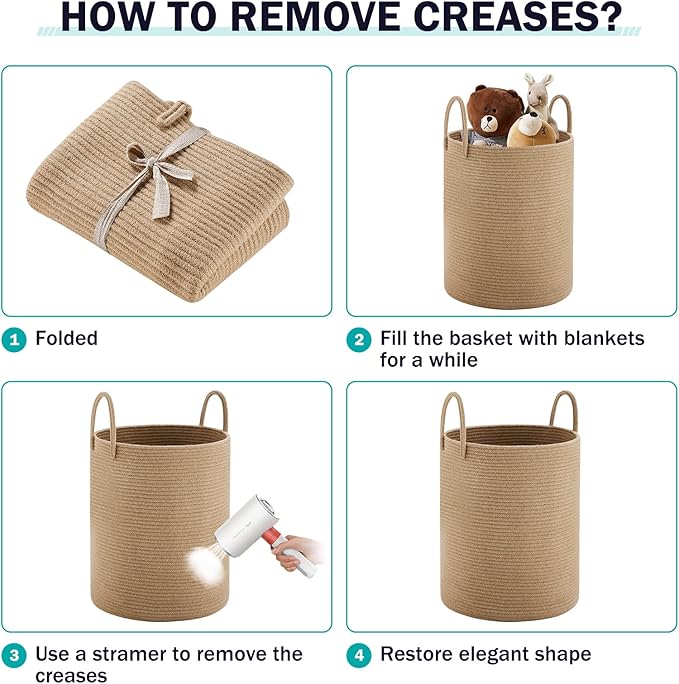 - 【Multipurpose Storage Baskets】72L capacity basket can keep things organized in a stylish and decorative way. You can use them to store extra towels, blanket, clothing, toys for baby and dogs, books, pillows or any other household items around the house, anything you can imagine