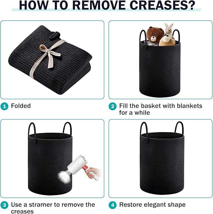 - 【Multipurpose Storage Baskets】72L capacity basket can keep things organized in a stylish and decorative way. You can use them to store extra towels, blanket, clothing, toys for baby and dogs, books, pillows or any other household items around the house, anything you can imagine