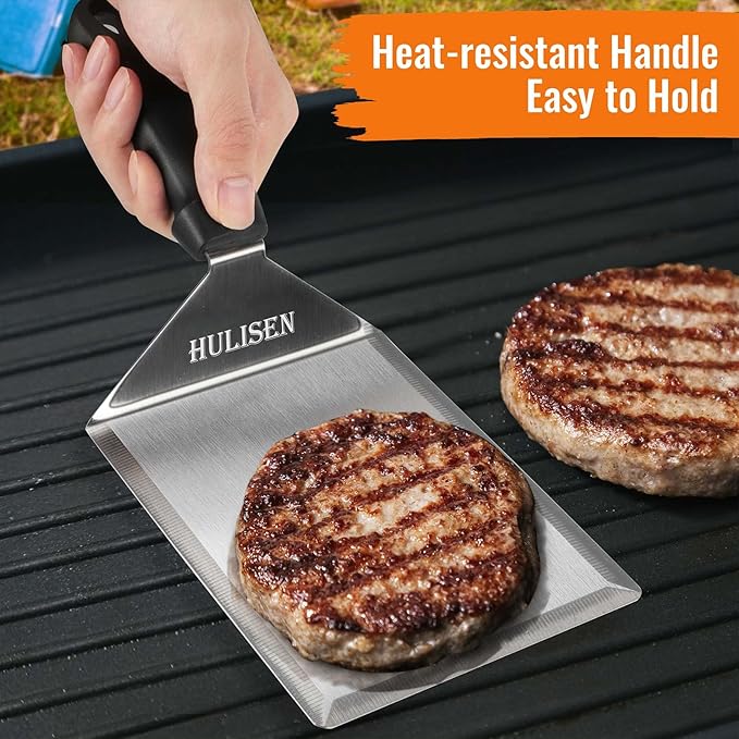 HULISEN Stainless Steel Spatula 2 pcs, 6 x 5 Inch Large Metal Spatula with Cutting Edges, Griddle Spatula for Smashed Burger, Essential Flat Top Grill Accessories, Grill Spatula for Outdoor Grill