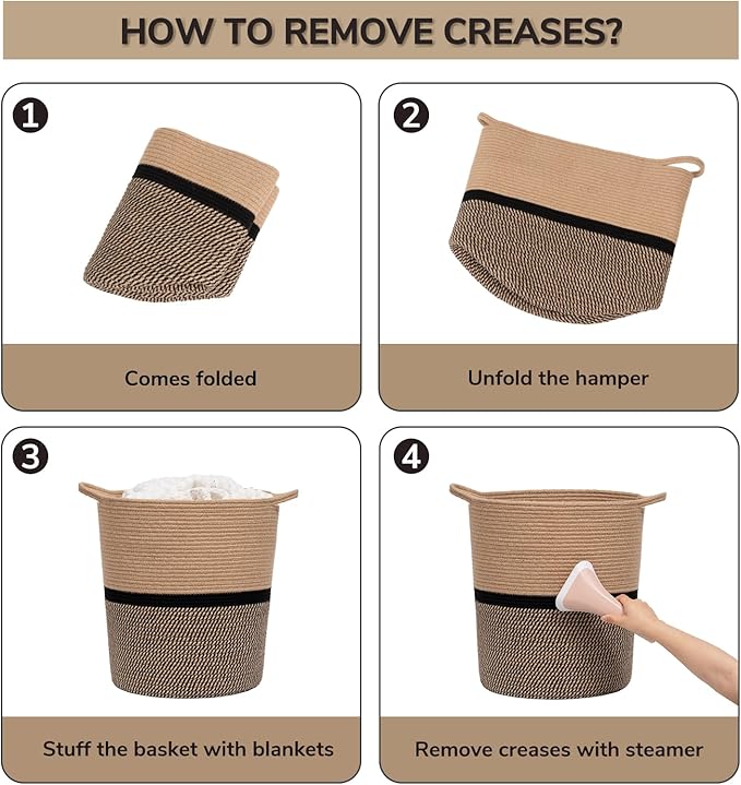 - Note: This clothes basket is folded for shipping. It will turn back to its elegant shape quickly by filling it with towels or blankets, and ironing is a great idea to regain the creases. Also, you can fold it into a flat shape for easy storage when not in use