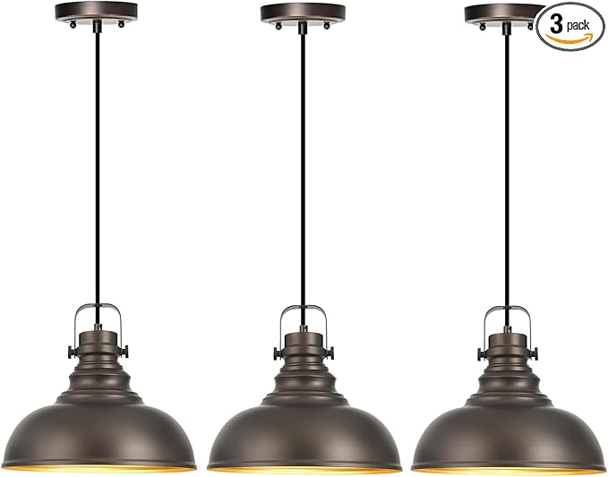 - Industrial & Vintage Design:Pendant lights for kitchen island have oil rubbed bronze finish featuring retro-style dome shade, this farmhouse pendant lighting is inner gold finish.the island lighting fixtures hanging is ideal for home, dining room, kitchen island, warehouse, entryway, corridor, restaurant, cafe, bar, club, barn, working bench.
